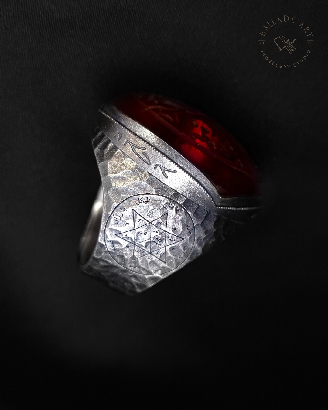 Bu yüzük, koruyucu ve hüküm tılsımları barındırmalıydı aynı zamanda da antik bir görüntüye sahip olmalı, islam kültürünün sembolizmasını ve süsleme akımlarını da barındırmalıydı.