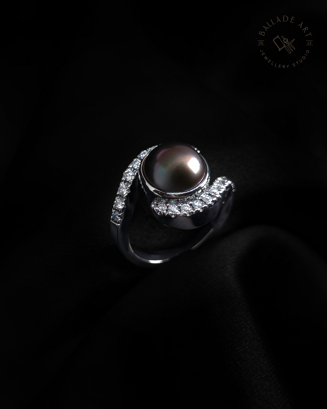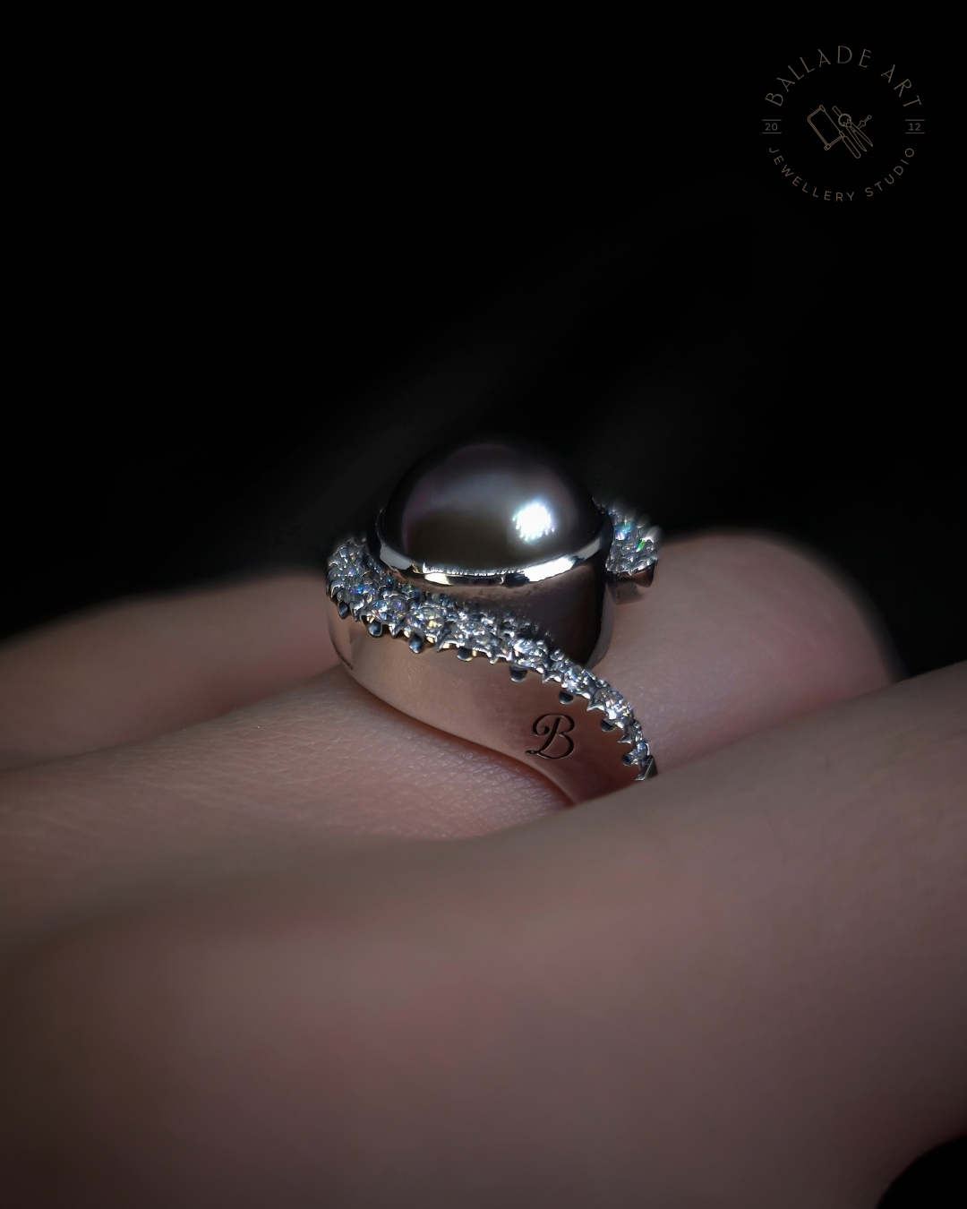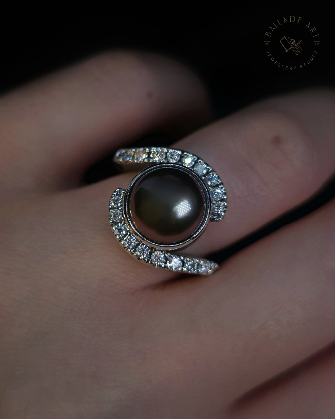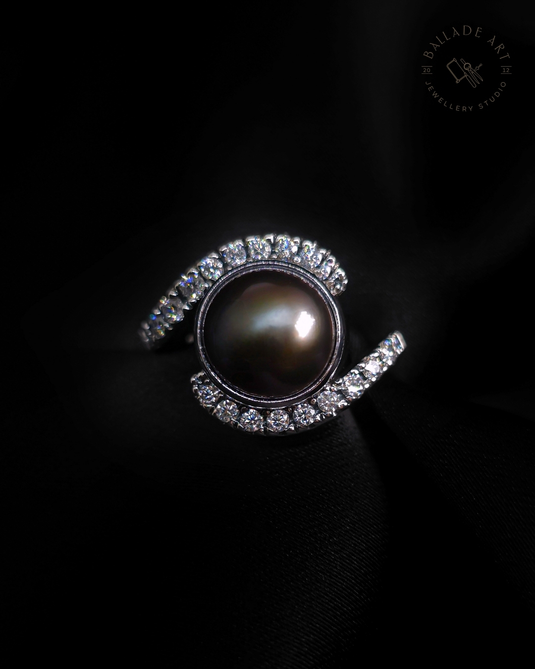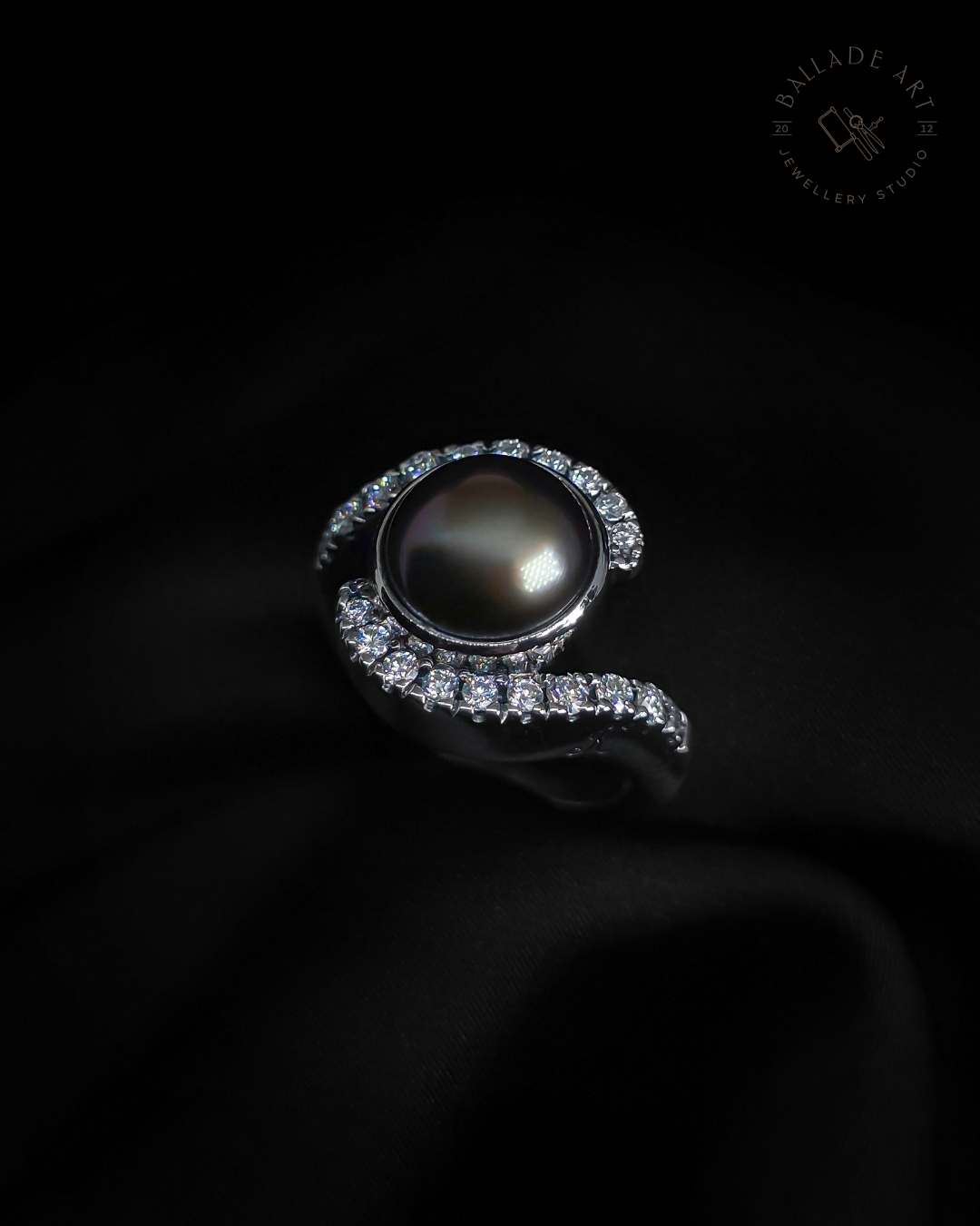 Siyah Tahiti İncili Özel Tasarım Evlilik Yıldönümü Yüzüğü,