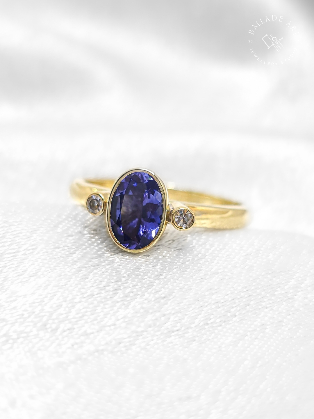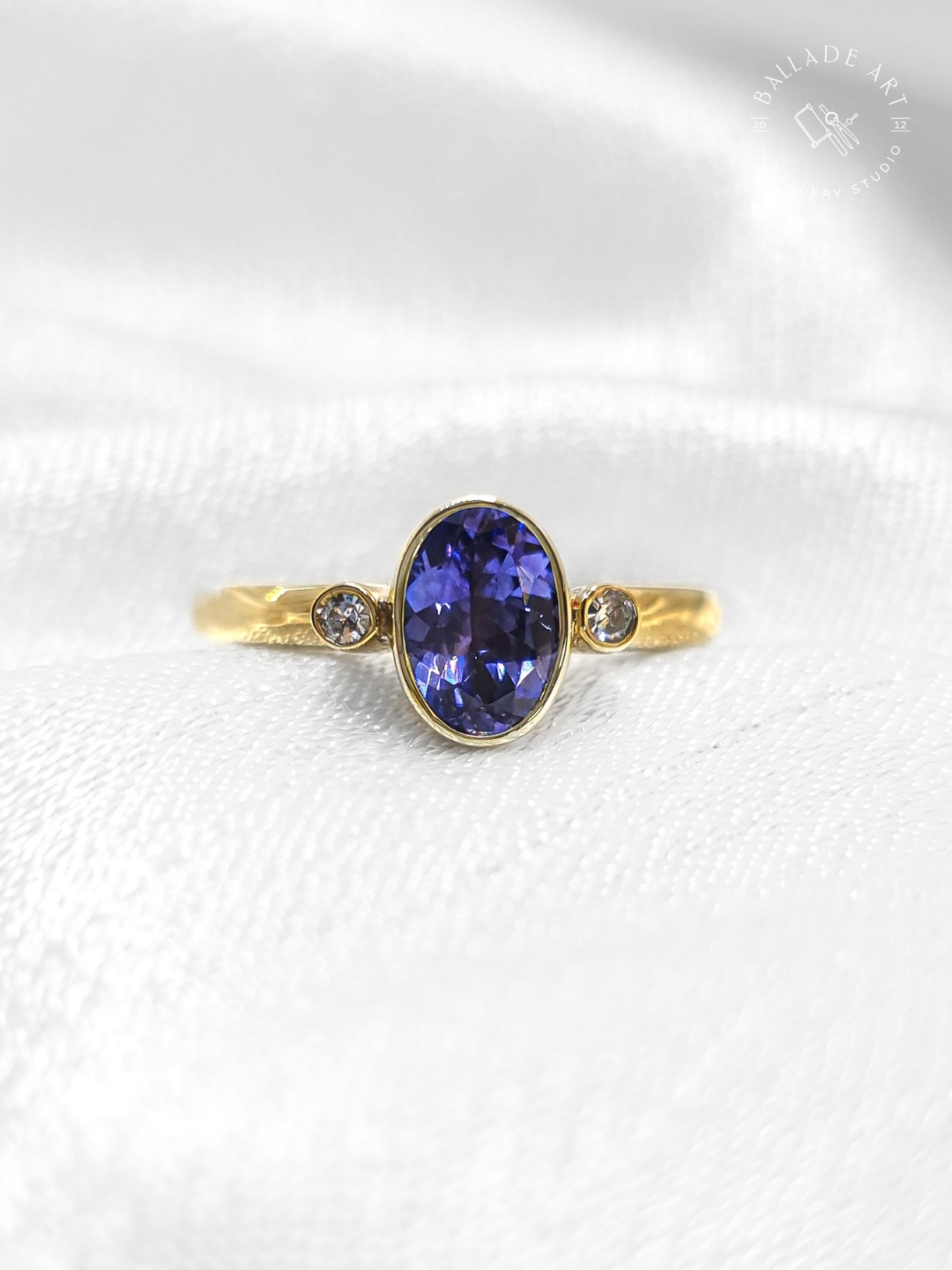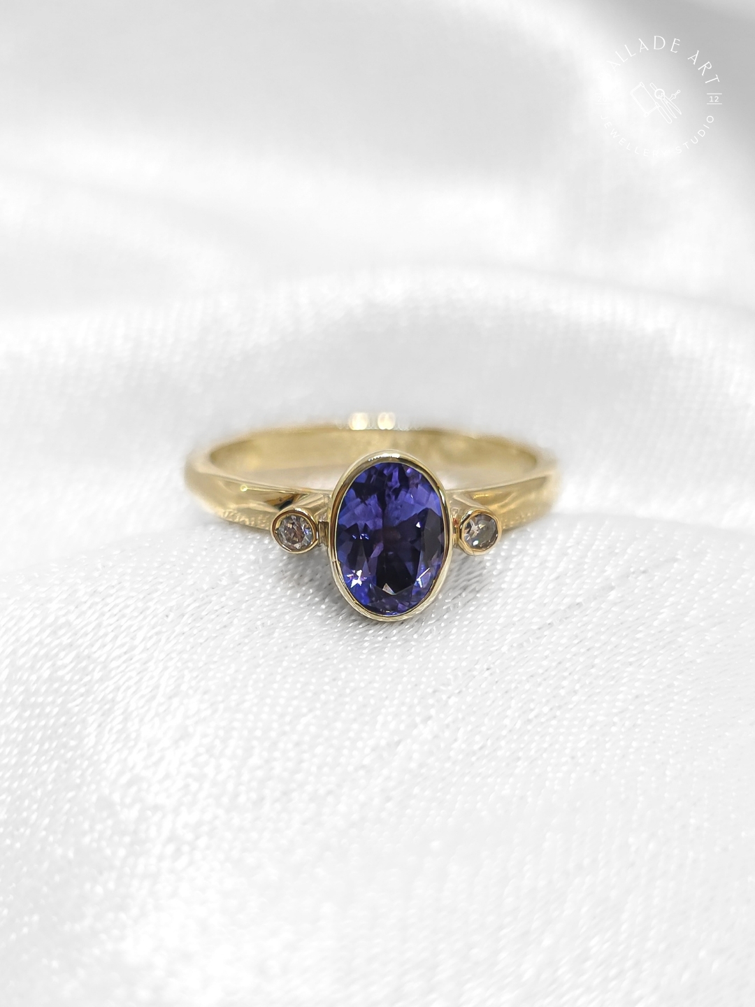 Tanzanit ve Elmas Pırlantalı Altın Tektaş,